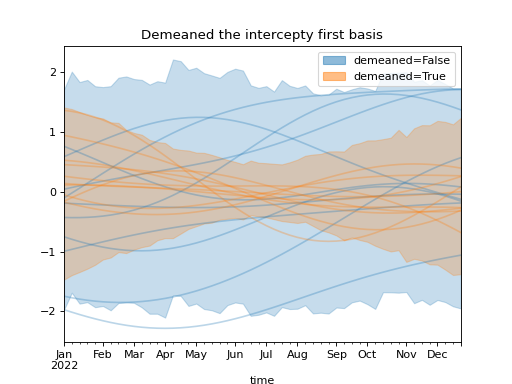 )Using a demeaned basis to remove “intercept” effect of first basis: